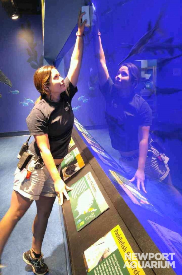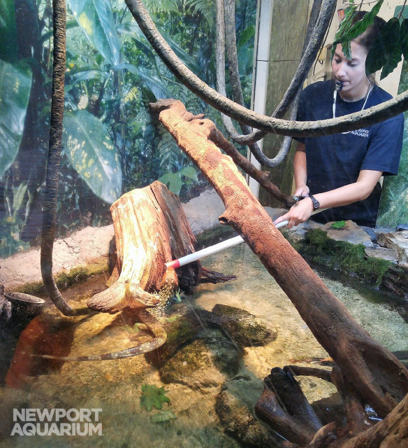 El entrenamiento es una parte importante del cuidado de muchos de nuestros animales aquí en Newport Aquarium. Los animales como los caimanes blancos y nuestros tiburones tienen un propósito. Esto significa que saben que tienen que llegar a un puesto de destino para obtener su comida. Denver, la tortuga boba y algunas de nuestras mantarrayas están capacitadas en la estación. Esto significa que los animales saben que tienen que ir a un lugar determinado cuando se les pide que lo hagan. Esto ayuda a los biólogos a trabajar de forma segura con estos animales y garantiza que cada uno de ellos reciba la comida y el cuidado que necesita.