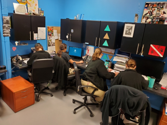 ¿Qué día está completo sin un poco de papeleo? Este aspecto de la época de nuestro biólogo es desconocido para muchas personas. Todo lo que hacemos por los animales se registra todos los días. De esta manera tenemos un registro preciso de lo que comieron los animales, qué tipo de enriquecimiento o entrenamiento hemos hecho, o si hay algún problema que vemos. El papeleo es la parte menos preferida de los biólogos, pero es importante que nuestros animales estén bien cuidados.